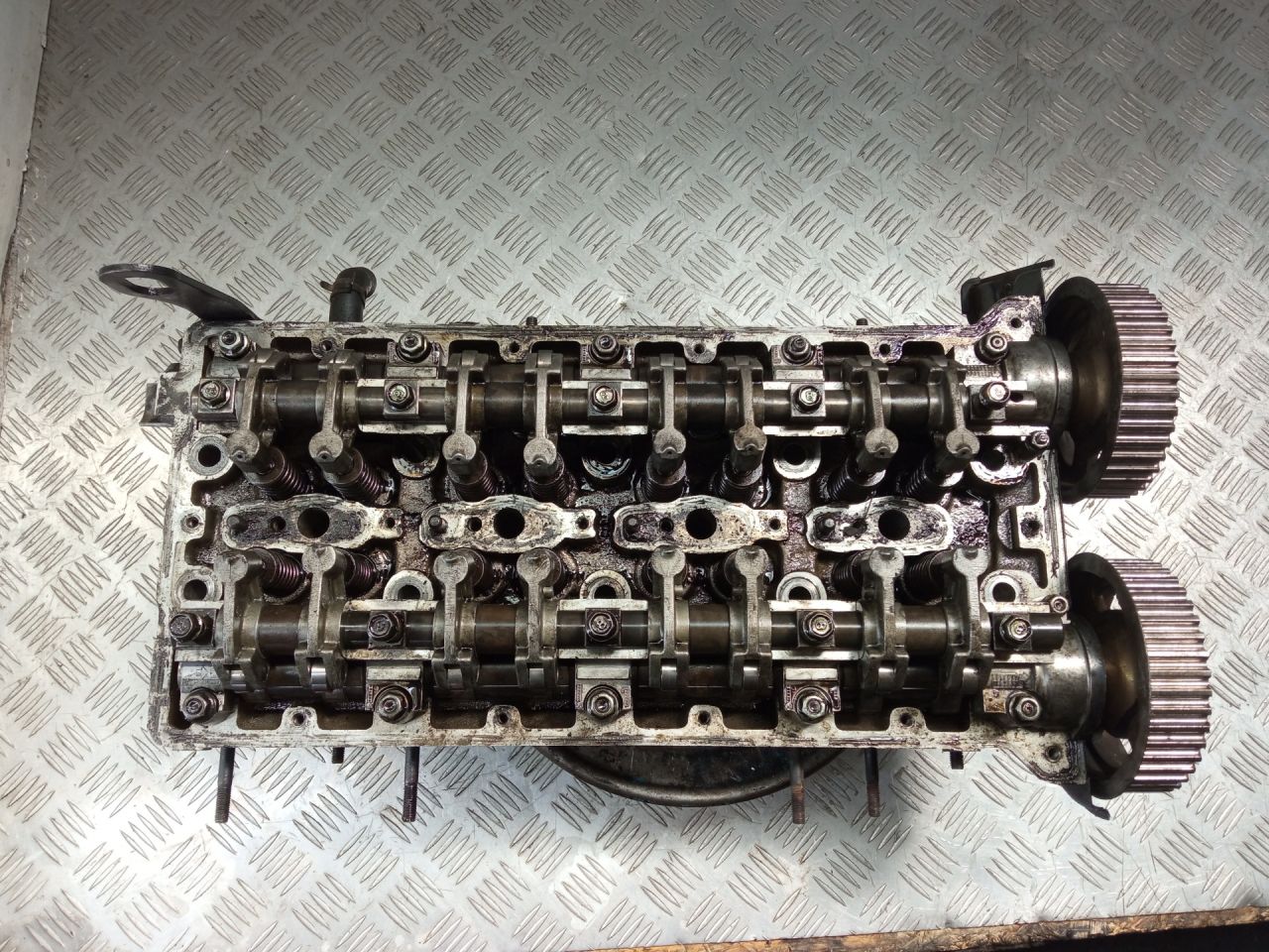 В сборе как на фото, проверена на герметичность - целая. Присутствует небольшая выработка в постели распредвалов.